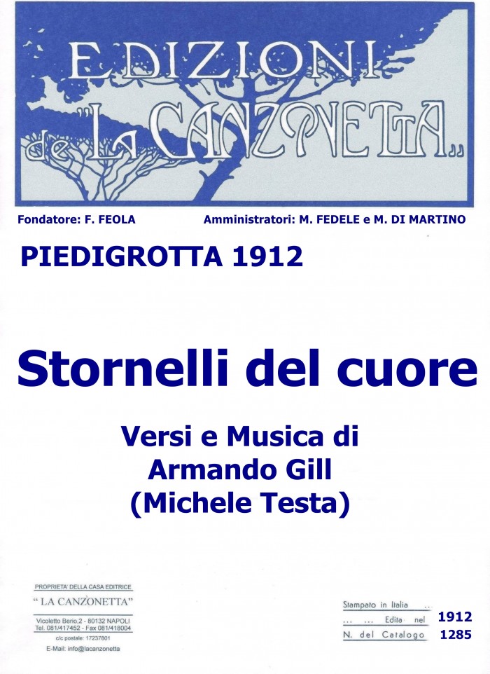 Stornelli del cuore (Versi e Musica di Armando Gill). Spartito musicale di Canto & Piano edito dalla casa editrice "La Canzonetta" nel 1912.