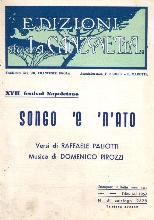 Songo 'e n'ate (Versi di Raffaele Paliotti - Musica di Domenico Pirozzi). Spartito musicale di Canto & Piano edito dalla casa editrice "La Canzonetta" nel 1969.