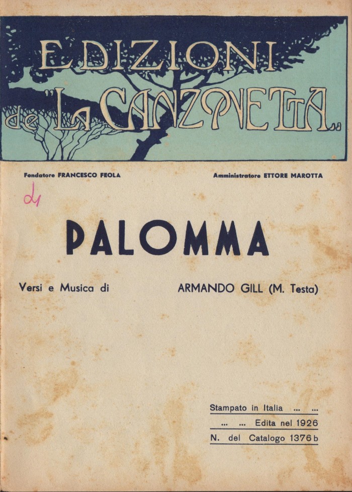 Palomma (Versi e musica di Armando Gill). Spartito musicale di Canto & Piano edito dalla casa editrice "La Canzonetta" nel 1926.