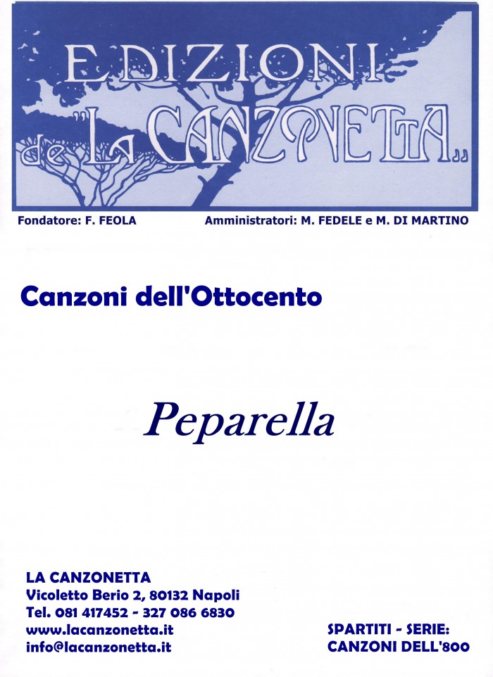Peparella (Versi e Musica di autore ignoto). Spartito musicale di Canto & Piano.