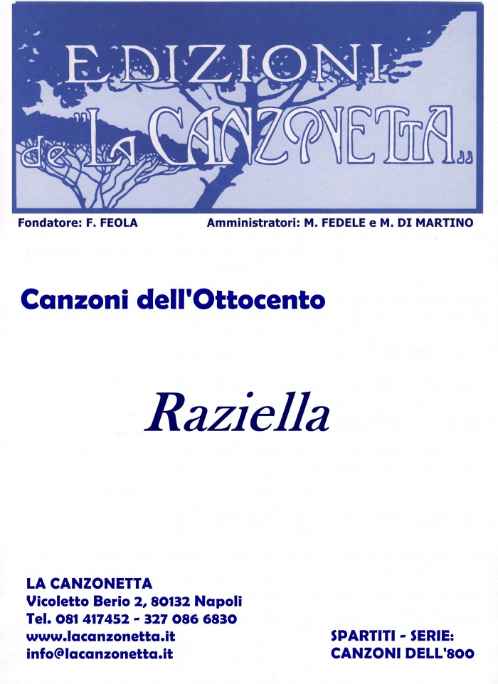 Raziella (Versi e Musica di autore ignoto). Spartito musicale di Canto & Piano.