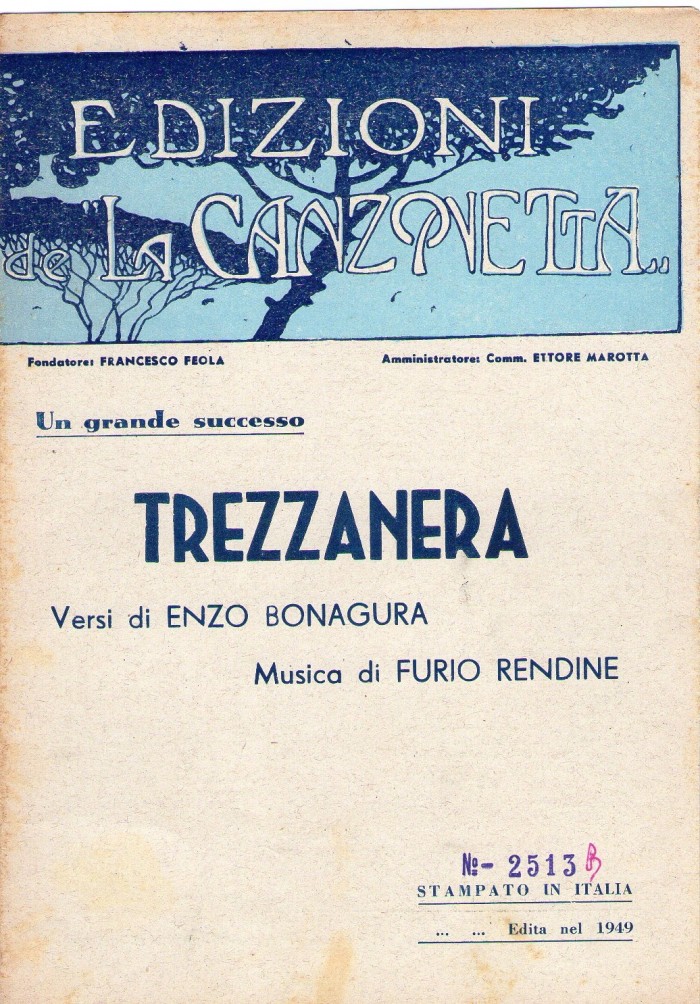 Trezza nera (Versi di Enzo Bonagura - Musica di Furio Rendine). Spartito musicale di Canto & Piano edito dalla casa editrice "La Canzonetta" nel 1949.