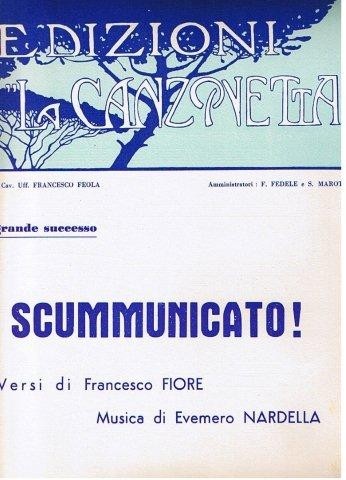 Scummunicato (Versi di Francesco Fiore - Musica di Evemero Nardella). Spartito musicale di Canto & Piano edito dalla casa editrice "La Canzonetta" nel 1924.