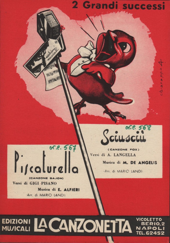 Sciusciù (Versi di Aniello Langella - Musica di Mario De Angelis). Spartito musicale di Canto & Piano edito dalla casa editrice "La Canzonetta" nel 1956.