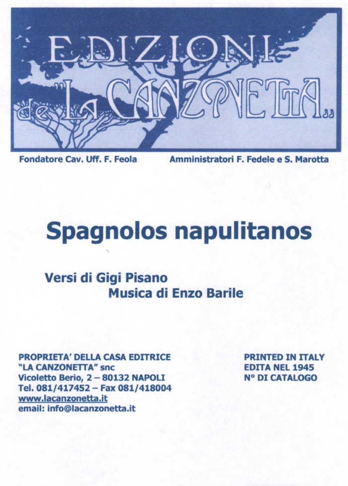 Spagnolos napulitanos (Versi di Gigi Pisano - Musica di Enzo Barile). Spartito musicale di Canto & Piano edito dalla casa editrice "La Canzonetta" nel 1945.