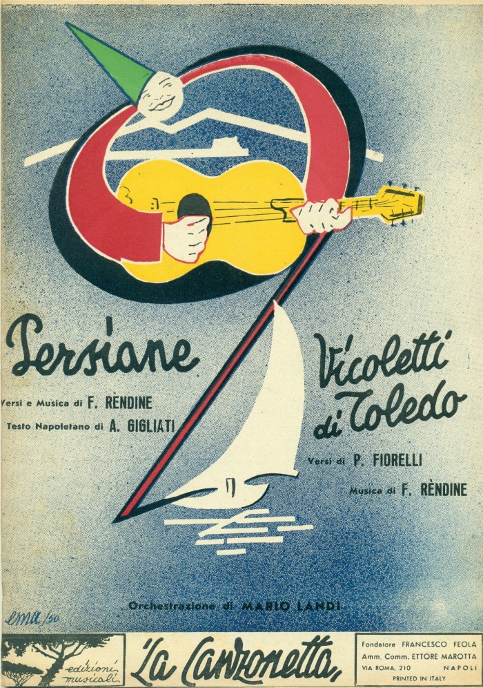 Vicoletti di Toledo (Versi di Peppino Fiorelli - Musica di Furio Rendine). Spartito musicale di Canto & Piano edito dalla casa editrice "La Canzonetta" nel 1950.