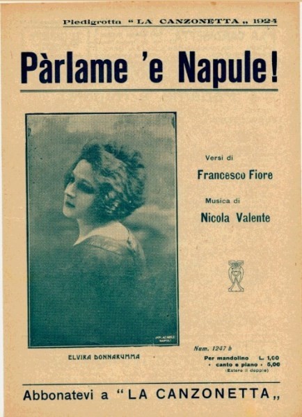 Parlame 'e Napule (Versi di Francesco Fiore - Musica di Nicola Valente). Spartito musicale di Canto & Piano edito dalla casa editrice "La Canzonetta" nel 1924.