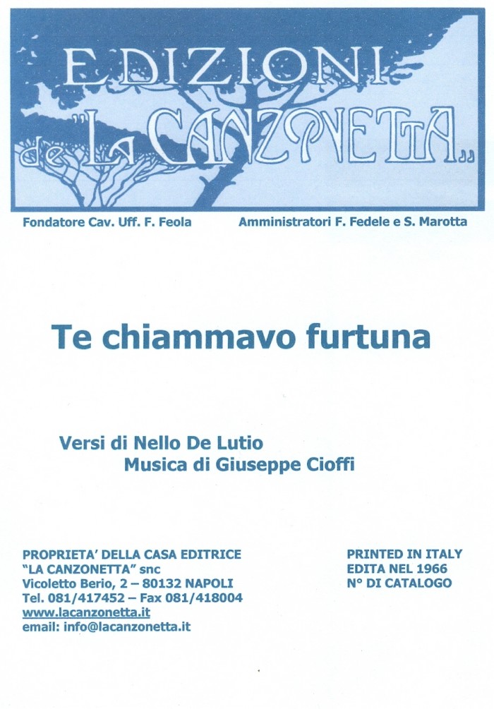 Te chiammavo furtuna (Versi di Nello De Lutio - Musica di Giuseppe Cioffi). Spartito musicale di Canto & Piano edito dalla casa editrice "La Canzonetta" nel 1966.