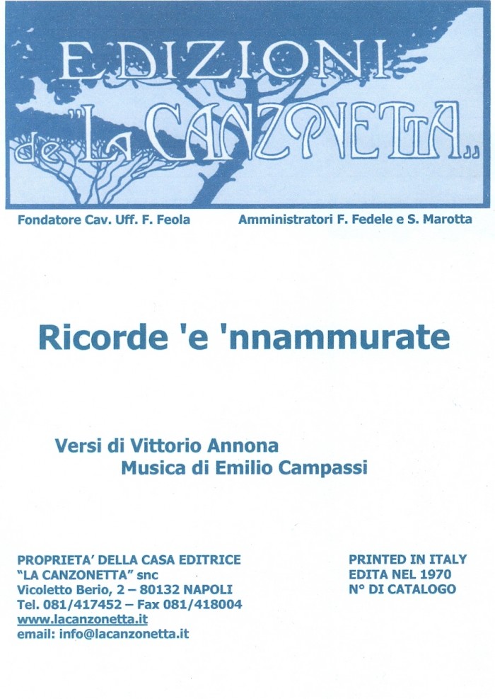 Ricorde 'e 'nnammurate (Versi di Vittorio Annona - Musica di Emilio Campassi). Spartito musicale di Canto & Piano edito dalla casa editrice "La Canzonetta" nel 1970.