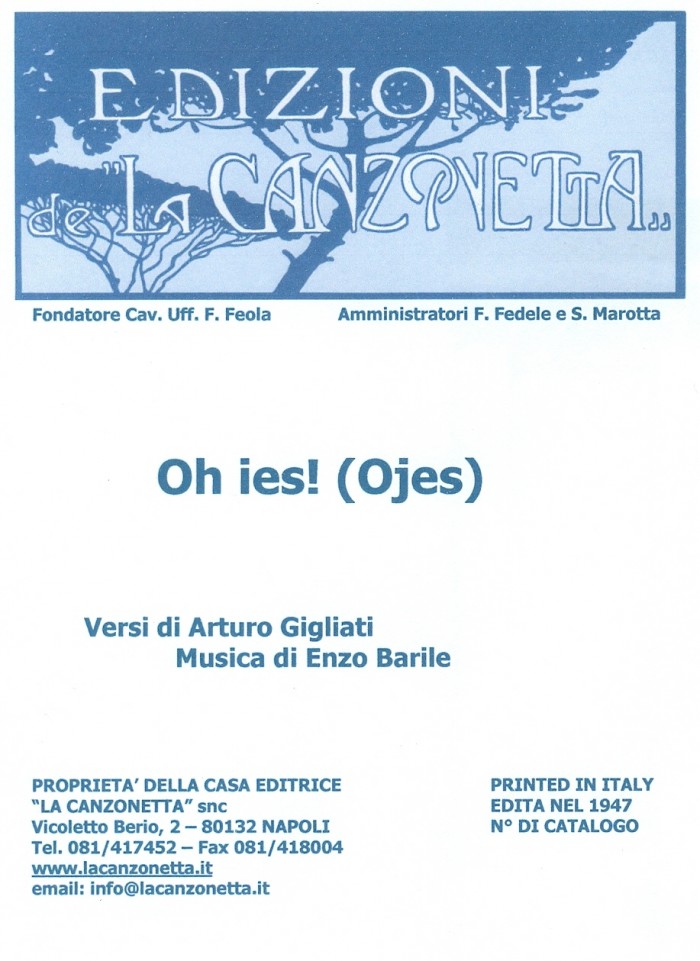Oh ies (Ojes) (Versi di Arturo Gigliati - Musica di Enzo Barile). Spartito musicale di Canto & Piano edito dalla casa editrice "La Canzonetta" nel 1947.