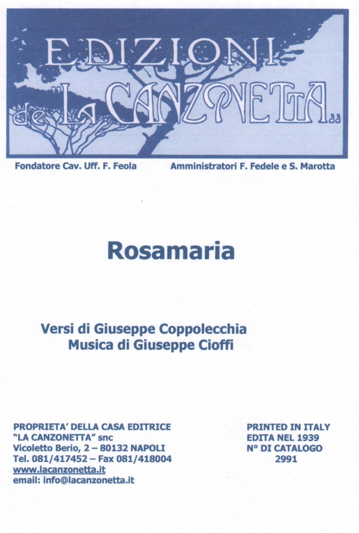 Rosamaria (Versi di Giuseppe Coppolecchia - Musica di Giuseppe Cioffi). Spartito musicale di Canto & Piano edito dalla casa editrice "La Canzonetta" nel 1939.