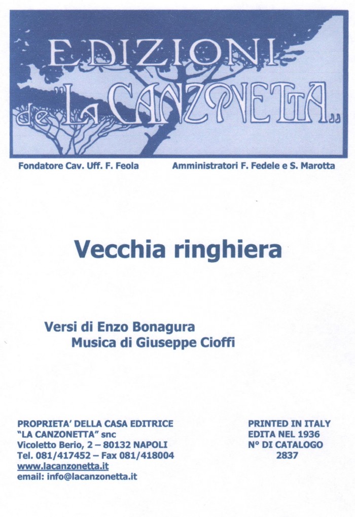 Vecchia ringhiera (Enzo Bonagura - Musica di Giuseppe Cioffi). Spartito musicale di Canto & Piano edito dalla casa editrice "La Canzonetta" nel 1936.