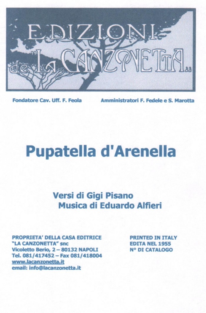 Pupatella d'Arenella (Versi di Gigi Pisano - Musica di Eduardo Alfieri). Spartito musicale di Canto & Piano edito dalla casa editrice "La Canzonetta" nel 1955.