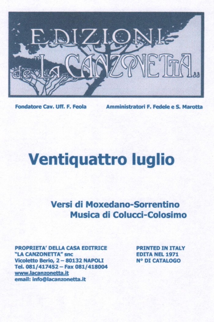 Ventiquattro luglio (24 luglio) (Versi di Moxedano-Sorrentino - Musica di Colucci-Colosimo). Spartito musicale di Canto & Piano edito dalla casa editrice "La Canzonetta" nel 1971.