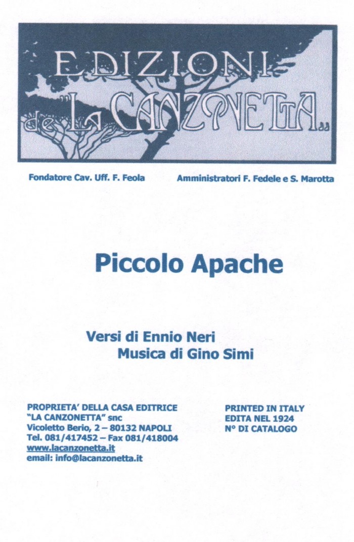Piccolo apache (Versi di Ennio Neri - Musica di Gino Simi). Spartito musicale di Canto & Piano edito dalla casa editrice "La Canzonetta" nel 1924.