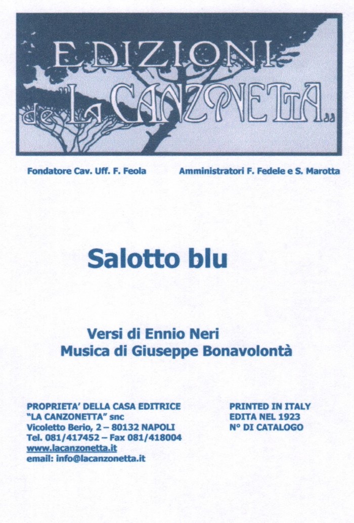 Salotto blu (Versi di Ennio Neri - Musica di Giuseppe Bonavolontà). Spartito musicale di Canto & Piano edito dalla casa editrice "La Canzonetta" nel 1923.