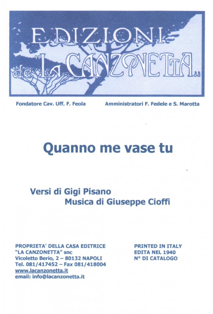 Quanno me vase tu (Versi di Gigi Pisano - Musica di Giuseppe Cioffi). Spartito musicale di Canto & Piano edito dalla casa editrice "La Canzonetta" nel 1940.