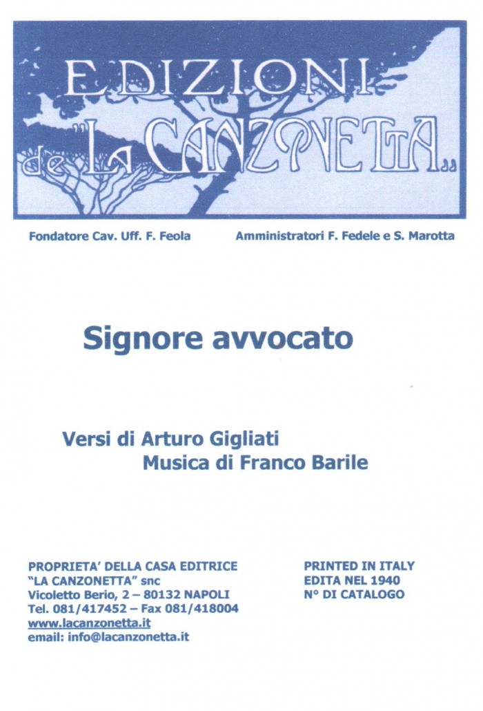 Signore avvocato (Versi di Arturo Gigliati - Musica di Franco Barile). Spartito musicale di Canto & Piano edito dalla casa editrice "La Canzonetta" nel 1940.