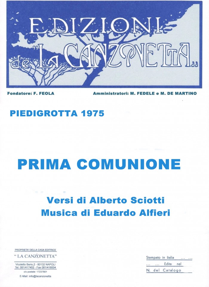 Prima comunione (Versi di Alberto Sciotti - Musica di Eduardo Alfieri). Spartito musicale di Canto & Piano edito dalla casa editrice "La Canzonetta" nel 1975.